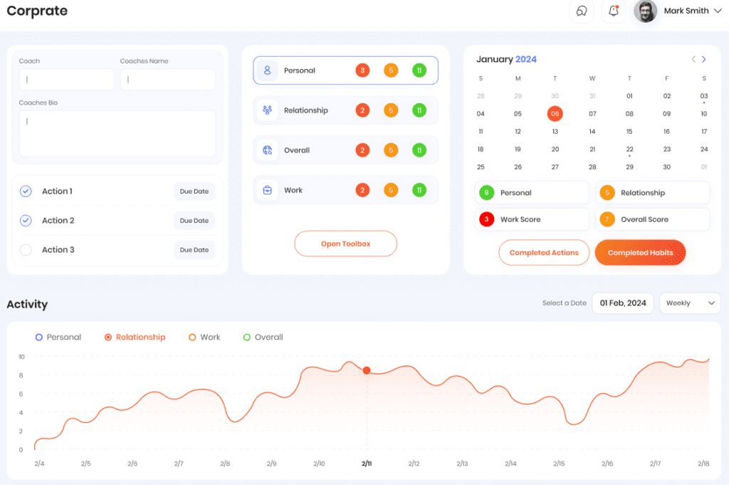 Personalized coaching for tracking, visualizing, and gaining insights into leadership development with tailored metrics for informed growth.
